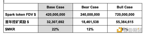 需要注意的是这是一个非常初步且静态的假设,实际 APR 需要等到更多 Spark t抹茶en 经济模型细节放出,并且也取决于 $MKR 价格的变化。