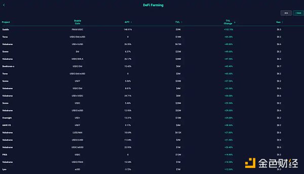 关于稳定币流动性挖矿,可以参考 Chaineye 的 yeild 板块,就不加赘述了,各个池子的组成、收益、TVL 都一目了然。