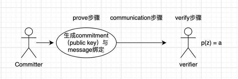 KZG 承诺无非就是多项式承诺中的一种,能够在不给定具体消息的情况下验证消息。大概流程如下: