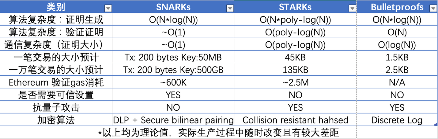 值得一提的是,ZK rollup 有许多种方案,stark、snark 或者 bulletproof 等。各个方案对于证明和验证的方式都不尽相同,因此出现了权衡。SNARKs 目前比 STARKs 技术更易上手,技术也更完善,因此许多项目刚开始都是使用 SNARKs,但是随着 STARKs 技术上的迭代后,最终会逐渐转向抗量子攻击的 STARKs。虽然以太坊为了与 rollup 适配,EIP-4844 主要改进之一是交易格式 blob,扩大了区块容量,但目前所有的零知识证明的主要瓶颈仍然在于自身证明算法,一方面通过改进算法来解决证明问题,另一方面通过堆叠硬件来提高证明效率,也因此衍生了 ZK 挖矿赛道。有兴趣的可以转到这篇文章。