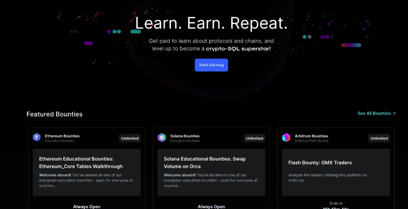 在他们的网站上有多个社区和各种任务被列为悬赏,人们可以完成这些任务来学习加密货币和赚取加密货币。