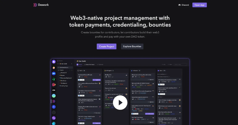 一个 Web3 原生的 Trello,具有代币支付、凭证和赏金的功能。
