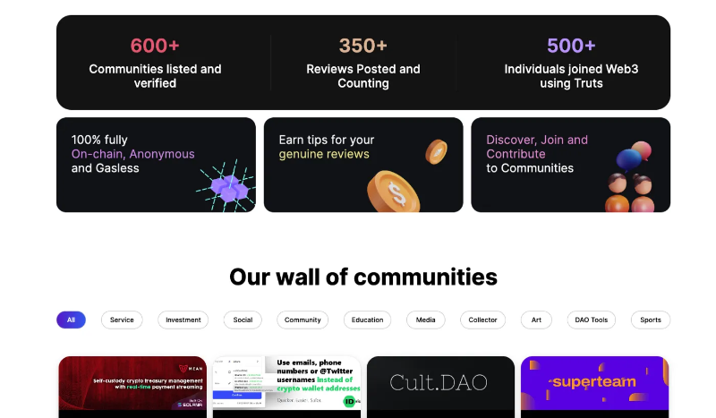 Truts 使人们能够通过评论轻松发现其所在领域中的顶级 DAO。