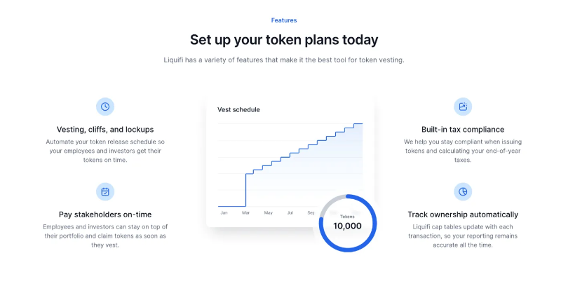 Liquify 能够进行更轻松地管理代币分配、合规性和跟踪归属计划制定。