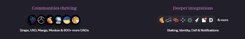 用户根据他们的钱包余额和他们持有的代币获得访问权。Grape 可以与你的 Discord ID 整合,所以现在可以进入一些 DAO 的 Discord,根据你持有的代币获得角色。数据存储在 Solana 上,因此很容易使用现有人们的钱包重新启动社区。