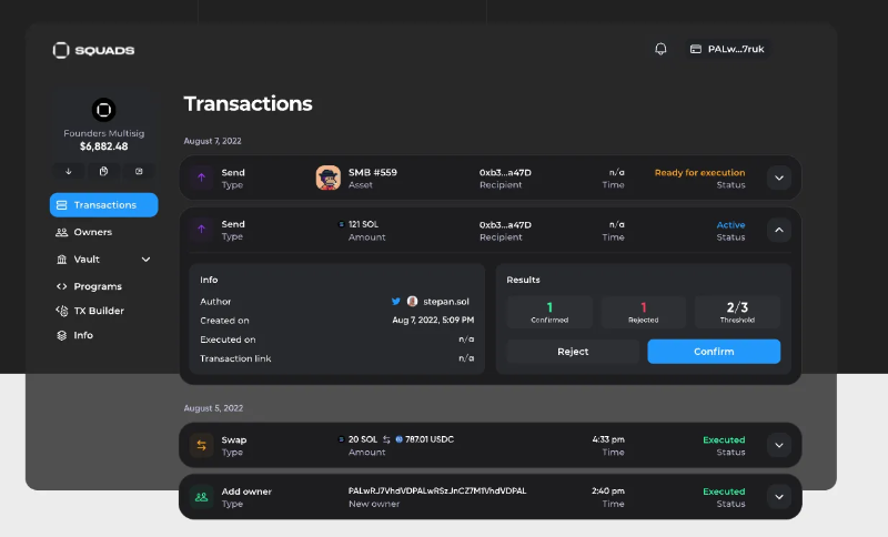 他们的 SDK 经典实用,可以非常容易地与 Squads 程序互动。