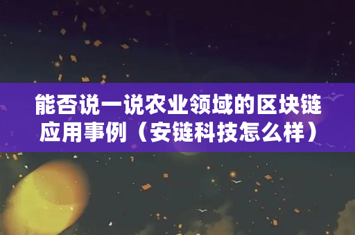 能否说一说农业领域的区块链应用事例(安链科技怎么样)
