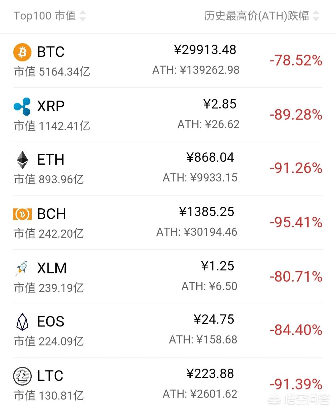 比特币是世界上规模最大,最知名的加密货币,在2017年疯炒时期最高接近2万美元,价格大约涨了20倍,随后开启了漫长的下跌之路,到目前仅剩3500多美元,明显的是崩盘的节奏。