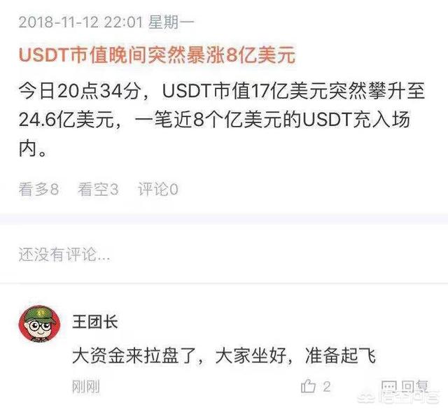 今晚刚刚又来一个利好消息了,USDT市值暴增8亿美金,可能是来拉盘,每年季度尾都有一波拉升,不知道会不会在未来几天展开呢,让我好好期待吧,拿稳手中的币哦,老铁们。