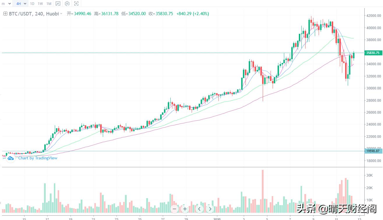 这波牛市行情中,我们能够发现跑在第一梯队的永远只有比特币一个,第二梯队的目前能够看到的就是以太坊和莱特币。经过1月11日的比特币下跌行情过后,能够看到截至目前为止比特币的价格浮动,在3.6万美元附近,以太坊基本上在1130美元附近,但是这波日线级别的回调才刚刚开始,后边能否演化成新的周线级别回调还需要时间来验证。