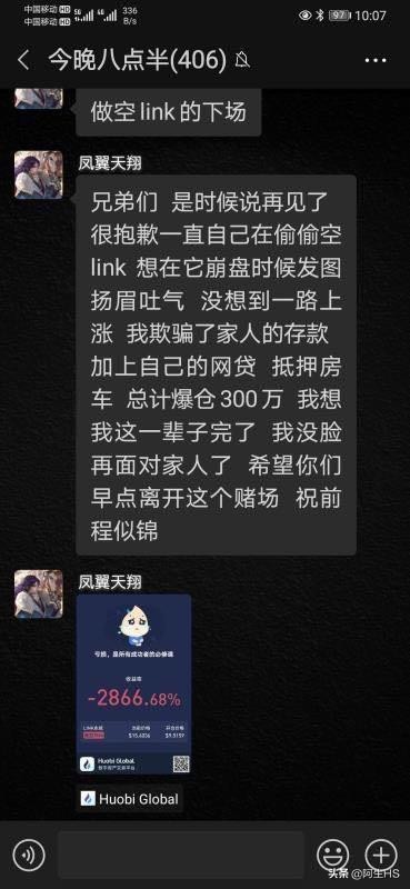 有人发微信暴出用家人存款,网贷,抵押房车的钱来做空LINK,结果爆仓亏损了300万,都没脸面对家人,看口气是想寻短见了。合