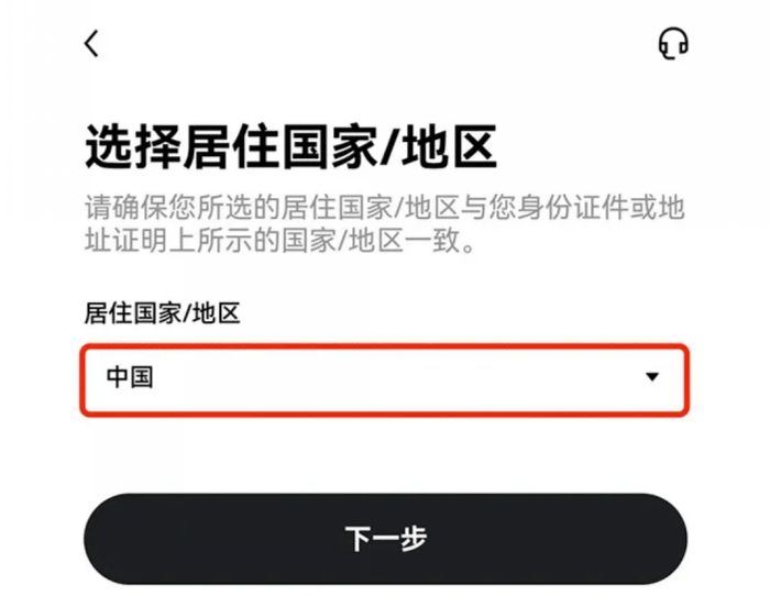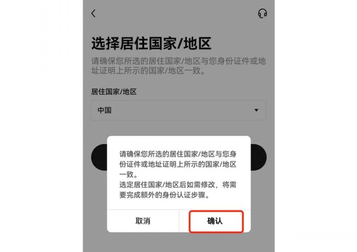 2.按要求选择【居住国家/地区】,点击【确认】