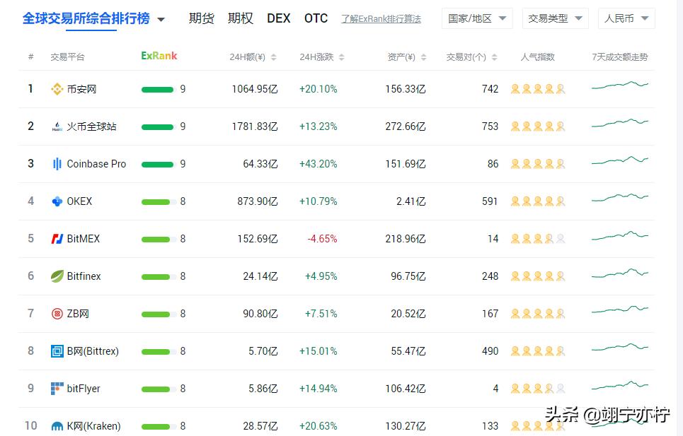 先来看看现在世界的几家头部交易所