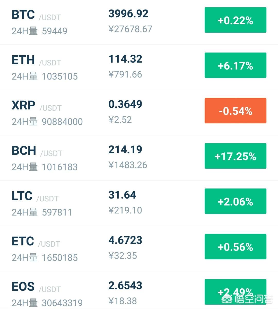 而这两天除了比特币之外,比较吸引人眼球的还有几个主流币,尤其是近期分叉的的比特现金BCH涨幅已经接近了三倍。而其他的山寨币因为之前的超跌也有不错的涨幅,比如以太坊、瑞波币、达世币、EOS等等都有非常不错的反弹,但到目前为止也基本上处于缩量上涨状态都遇到了各自的阻力位。