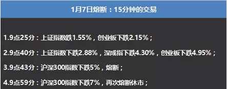 2016年1月4日和7日A股四次“熔断”,一周沪深两市蒸发8万亿市值,可以说是个彻头彻尾的悲剧。仅1月7日,A股开盘半小时内二次熔断,仅成交14分钟,近1700只个股跌停,创造历史最快收盘纪录。