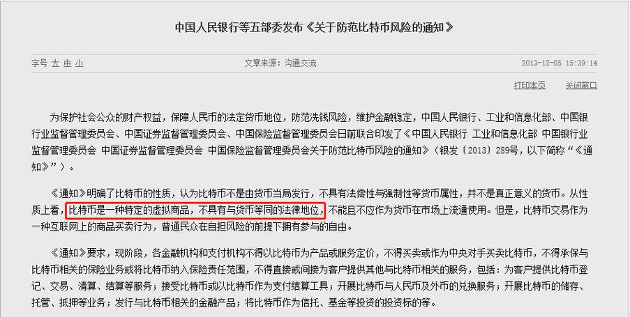 2、2013年,央行等五部委发布《关于防范比特币风险的通知》,首次对比特币进行监管,通知指出,比特币不具有法定货币地位,金融机构不得开展比特币业务。