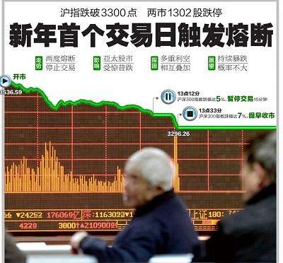 2016年1月4日,熔断机制实施的首个交易日,沪深300指数在午后不久就触发了跌幅7%的熔断值;1月7日甚至在上午开盘57分钟即再次暴跌并触及7%的熔断值。当天晚上,为了维护市场稳定,证监会叫停熔断机制。