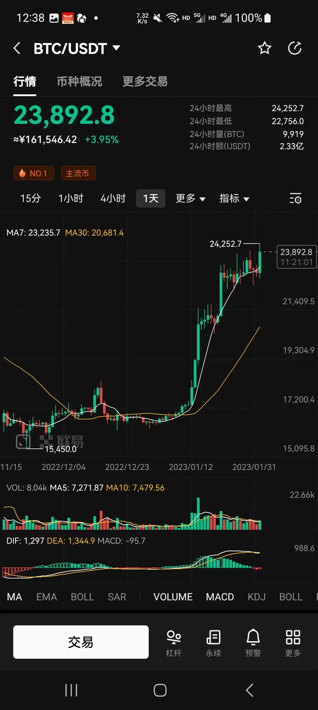 从比特币的月K线,周K线与日K观察,比特币的向上趋势已经形成,主要影响比特币价格走势的美联储利率上浮即将结束,这也是全世界币圈关注的焦点。长线投资的可以分批进场,有人说未来比特币会涨到10万美元或1 0 0万美元以上!信不信由你了。