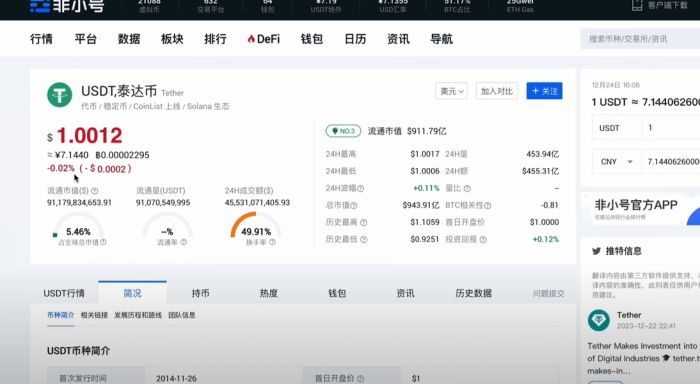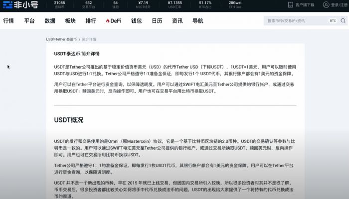 这就好比你进入了赌场,你需要先把你带的现金换成赌场的筹码。然后再拿着这些筹码去玩各种游戏。USDT就是数字货币里的筹码。USDT它是一种稳定币。和美元是1:1挂钩的。但他们之间有一些微小的汇率浮动。大概在千分之几的范围。它是由泰达公司发行的,所以又叫做泰达币。它是稳定币当中的一种,稳定币其实还有别的,比如说USDC。只是USDT它是我们用的最多的稳定币。