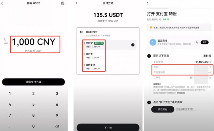 然后你根据商家需要的收款信息进行付款,通过支付宝、微信或者是银行都可以。完成付款之后,平台会把商家的币放给你。欧意在其中它其实并没有参与交易。它只是类似于一个支付宝的作用,撮合双方完成买U的交易。