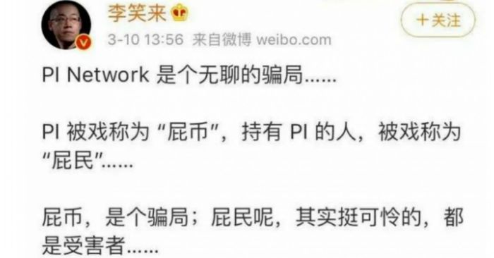 但是,币圈的大佬们可不是那么好对付的,Pi币想蹭流量,李老师却亲自出来发微博说Pi Network是个骗局,不好玩。这让我想起李笑来以前说的一句话,傻子的共识也是共识。