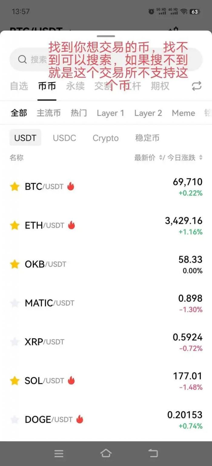 交易币对这里看看到按板块分类,可自行选择,有热门币,meme币,gamefi等等,也可以直接搜索交易币对。