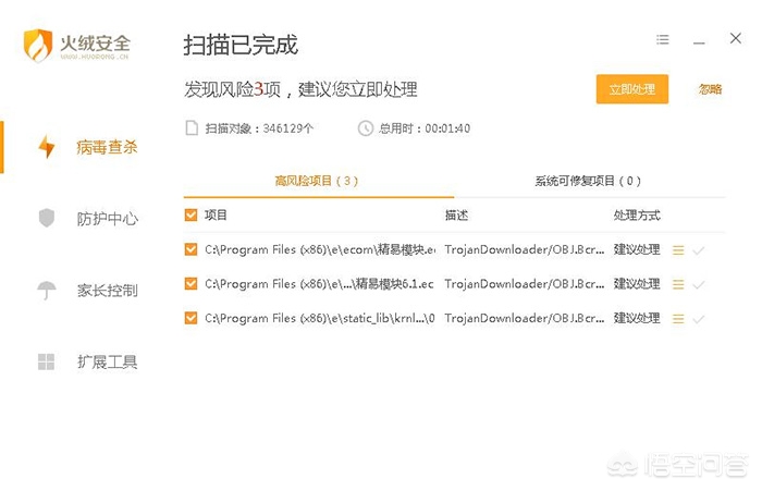 现火绒已经可以查杀此类被感染的易语言库文件,请装有易语言编译环境的开发人员下载安装火绒安全软件后全盘扫描查杀。查杀截图,如下图所示: