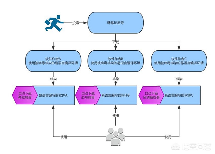据火绒安全团队分析,病毒作者首先攻击软件开发者的电脑,感染其用以编程的“易语言”中的一个模块,导致开发者所有使用“易语言”编程的软件均携带该勒索病毒。广大用户下载这些“带毒”软件后,就会感染该勒索病毒。整过传播过程很简单,但污染“易语言”后再感染软件的方式却比较罕见。截止到12月3日,已有超过两万用户感染该病毒,并且被感染电脑数量还在增长。