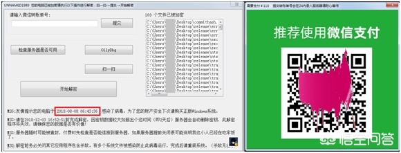 近日,多家网络安全机构确认,国内出现了要求微信支付赎金的勒索病毒。该病毒入侵用户电脑后会加密用户文件,但不收取比特币,而是要求受害者扫描弹出的微信二维码支付110元赎金,获得解密钥匙。