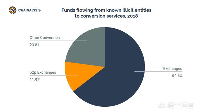 2018年绝大多数与犯罪有关的加密货币最终都是通过基本的在线兑换服务进行洗钱。Chainalysis的区块链研究人员计算出,去年总额超过10亿美元与犯罪有关的加密货币中,约有64%是通过简单地将其存入数字资产交易所并进行交易而被洗成干净和合法的资金。