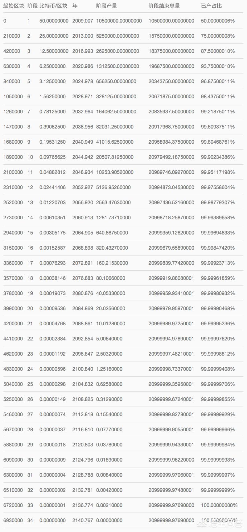 最终产生的比特币数量,准确的说是20999999.97690000个,比2100万少一点。
