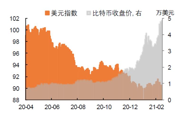 4,比特币和美元走势已经呈现出明显的负相关性,加固了人们对其避险保值资产的定义。