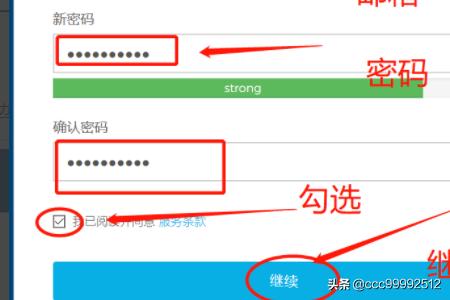 2、弹出登陆界面,点击右上角的注册进去,弹出注册界面,输入邮箱,设置密码后,点击继续即可。