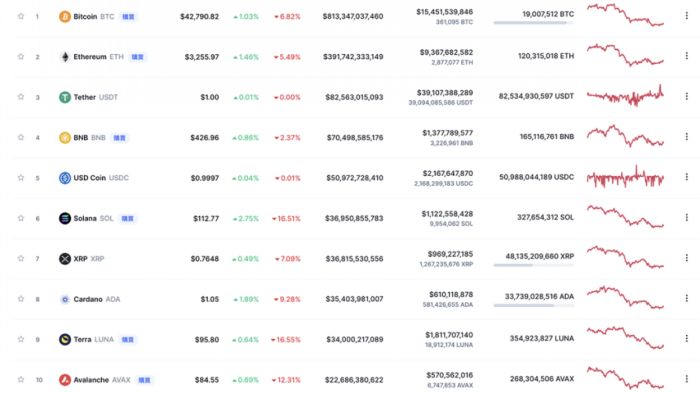 DeFi 币:如$LUNA、$AVAX、$UNI 等等