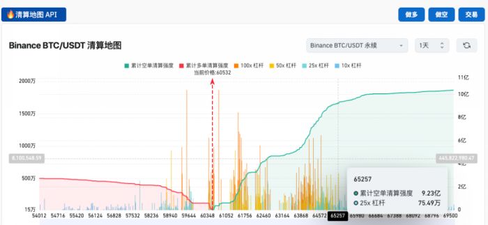 空单在65k附近就能够累计9亿美金的清算强度,所以出现往上的反弹其实并不意外,甚至上涨的速度可能会比大家想象得还要快。