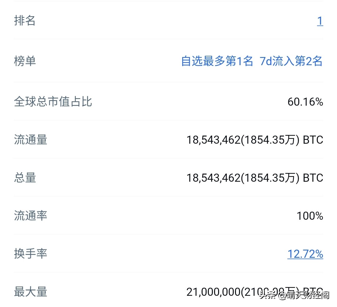 比特币总量为2100万枚,已经被开采出来百分之八十,还剩百分之二十没有开采挖掘出来,那就是大概约300万枚。由此可见这种币种越来越难得了。想得到也越来越困难了,也会越来越稀缺。