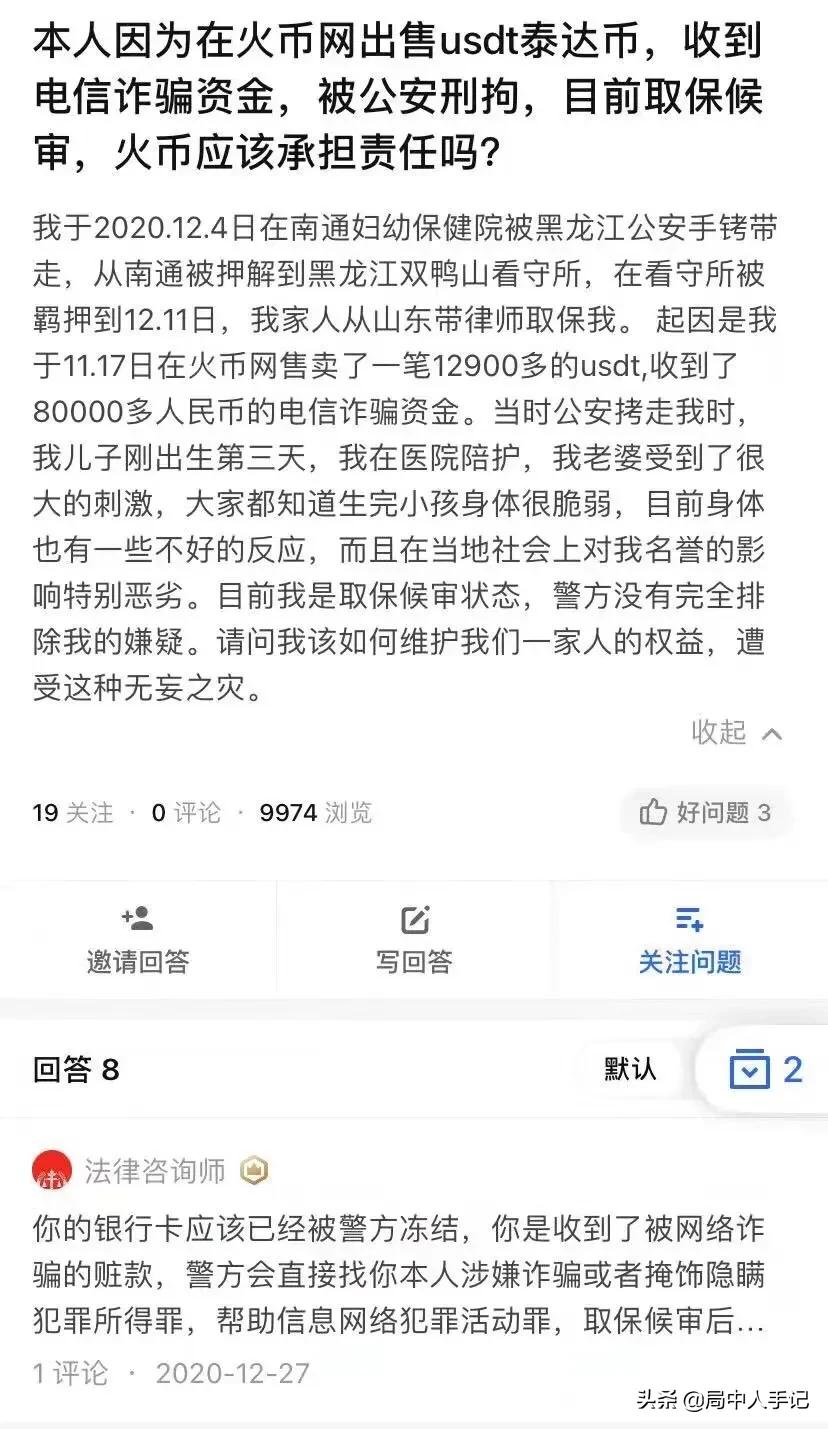 比如最近的一则新闻就是线下交易被人诈骗的(图2和3)。不过交易所交易也有风险,如果你的交易对手的钱来路不明,你肯定也很可能被要求协助调查(图1)。我朋友就遇到过银行卡被封,好在他金额小,三天后就解封了。