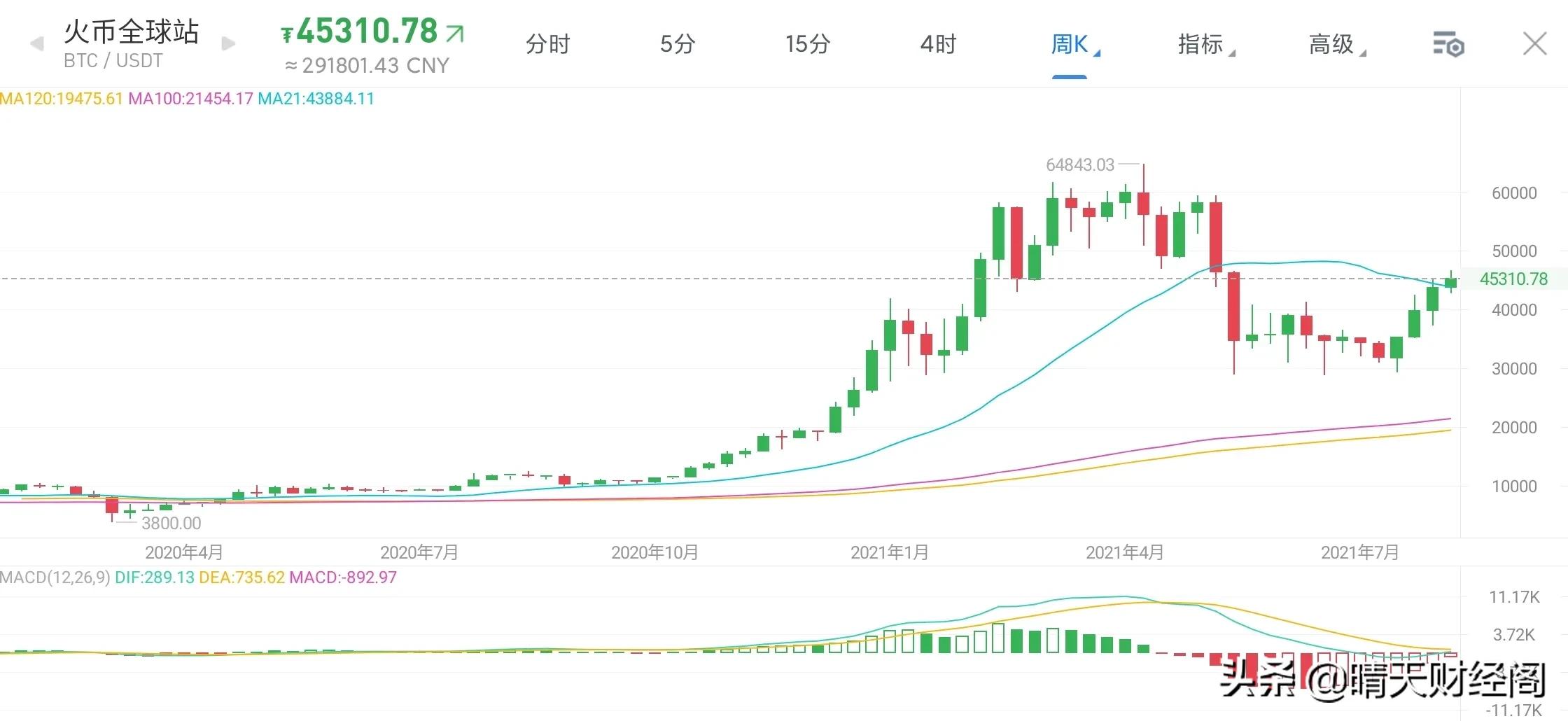 目前来看这依旧属于比特币之前的下跌反弹行情,从比特币的周线行情图上,我们能够清晰的看到,在达到了64800美元附近的最高点以后伴随着全球监管的加强,比特币开始出现了下跌行情,并且是以周线级别形成了三个月时间的震荡下跌。