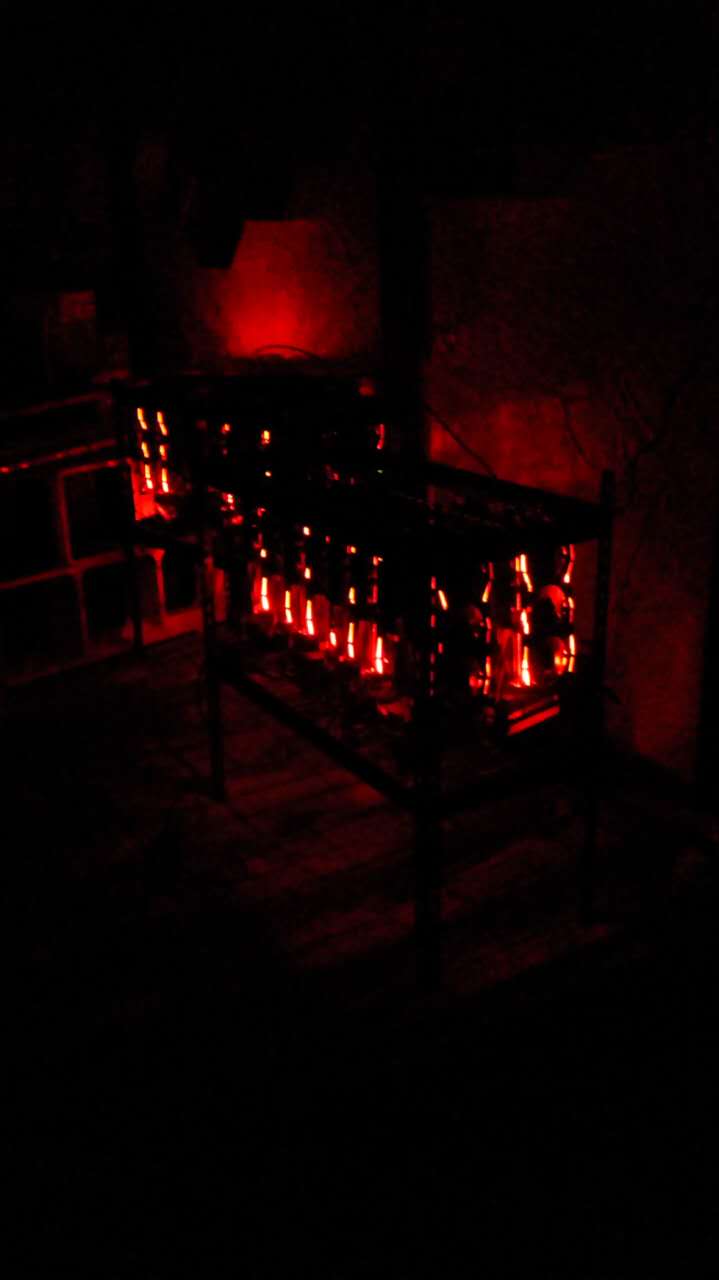 图片为:注册的个性化车牌(乙太币)以及自己自制的矿机的夜景.
