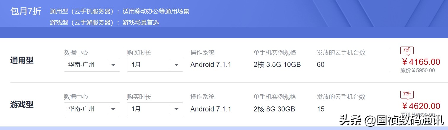 官网上目前的价格有两种:最低的是60台云手机实例,低至99元/每手机实例/月(2 核 /3.5 GB 内存 /10 GB 存储)。
