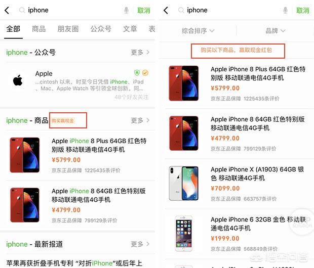 点击「更多」按钮,则进入京东完整的搜索结果页,这个时候系统还会再次提醒你:「购买以下商品,赢取现金红包」。