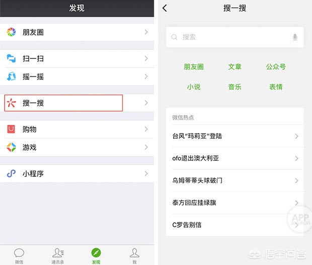 打开微信底部导航栏的「发现」,进入「搜一搜」,或者直接在聊天列表的搜索框中输入关键词(有时候搜索结果较多,可能需要点击「搜一搜」过滤其他不相关的内容),如「iPhone」、「大米」、「数据线」等,新世界的大门就向你打开了。