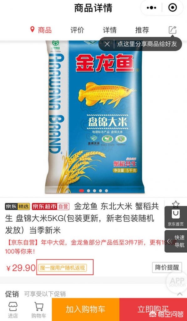 进入商品详情页后,京东大概是怕我们眼神不好,还要在价格旁边再提醒一次「搜一搜用户随机返现」。