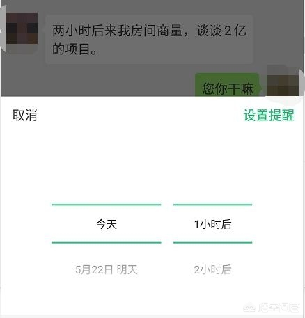 设置方法:长按聊天记录里的“某条消息”,选择“提醒”进入定时界面。
