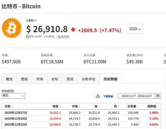 2、历史价格查询:可通过查询比特币价格历史数据,了解比特币价格的走势。