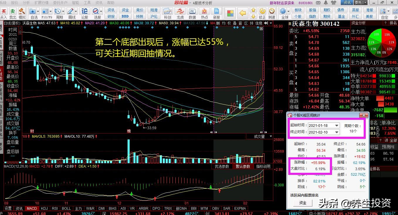 后市走势会如何呢?第二个底部出现后,涨幅已达55%,可关注近期回抽情况。详见附图3。