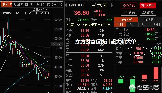东方财富软件计算资金净流向时,只是统计超大单和大单,按照超大单和大单资金流入量的和减去超大单和大单资金流出量的和便是资金净流量,360上周五的资金净流量为-2460,这也就意味着主力资金总体还是以流出为主,