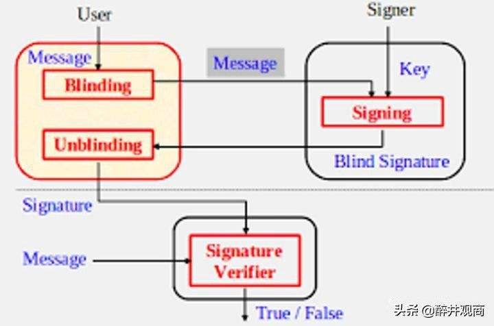 另外,匿名的在线货币更像现金,而且匿名的数字现金非常神奇,银行会知道这笔钱去什么地方,这里又用到“盲签名”的技术。