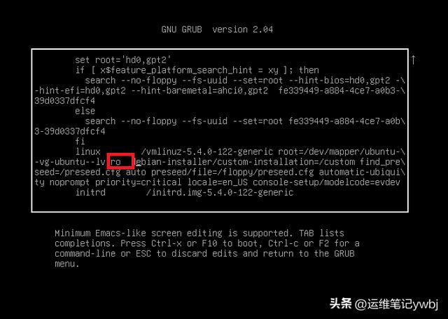 前面都一样,进入内核编辑界面,只是输入的口令不一样。
