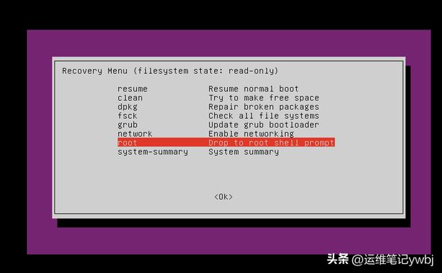 由于root本身没有设置密码,所以直接回车,即可进入root用户的命令模式。可直接修改其他用户的密码,如:ubuntu用户。也可以设置root密码,但是设置后,下次就不能用这种方式修改root密码了。